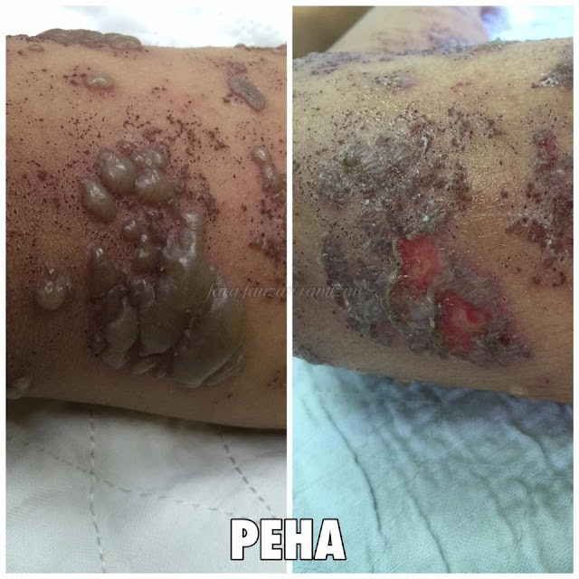 "Saya sapu Calamine Lotion sebab ingatkan ruam. Keesokkannya bintik-bintik itu semakin timbul. Bawa ke klinik, doktor beri ubat sapu tetapi masih tak pulih dan semakin melarat. Terus bawa ke hospital dan doktor bagi ubat makan dan sapu," katanya.